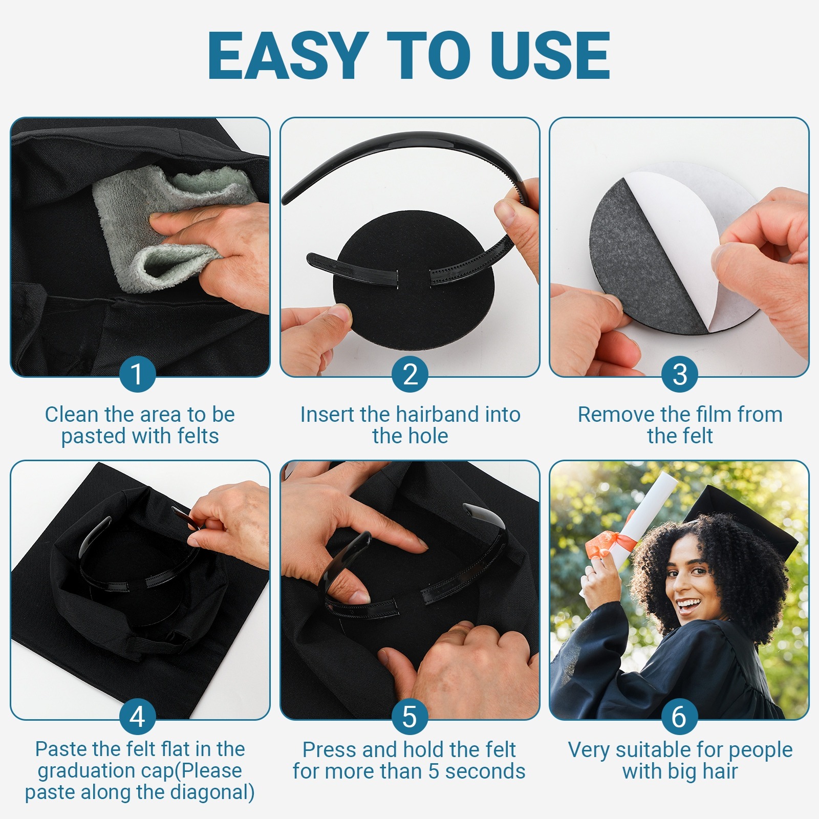 The 4 pieces graduation cap headband set is the ideal accessory for graduation ceremony. The grad cap headband are specially designed for fixed graduation hats, ensuring that the graduation hats remain stable when you walk, take photos or participate in ceremony activities. The elastic design of the cap headband can adapt to different head shapes and provide a comfortable fit, so that you can meet every moment confidently without worrying about the graduation hat slipping off at this important moment of graduation.